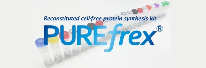 PUREfrex® is a reconstituted cell-free protein synthesis kit which GeneFrontier has developed based on the PURE system technology. It consists of only purified factors necessary for transcription, translation and energy regeneration. The target protein is synthesized by adding the template DNA (or mRNA) to the reaction mixture. The synthesized protein with a tag can be easily purified because all of proteins in the PUREfrex® contain no tags.