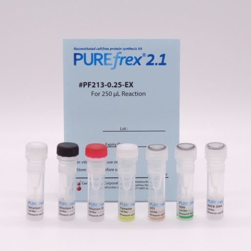 PUREfrex® is a series of newly developed reconstituted cell-free protein synthesis reagent based on PURE (Protein synthesis Using Recombinant Elements) system technology invented by Professor Takuya Ueda in the University of Tokyo.