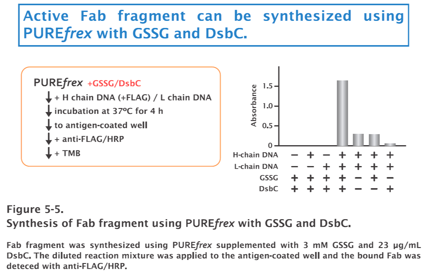 PUREfrex® 1.0 / DsbC Set / disulfide bond formation / tissue plasminogen activator (tPA)/ acid phosphatase (AppA)/ alkaline phosphatase (AP) / Fab antibody