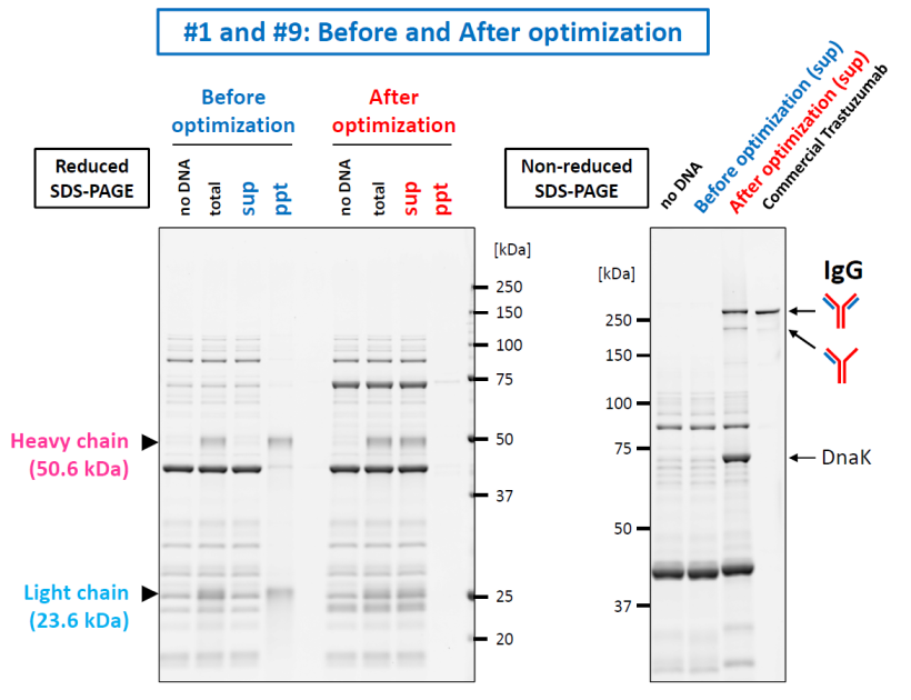 PUREfrex® 2.1 / DsbC Set / DnaK Mix / cell-free IgG synthesis / Trastuzumab / IgG1 / IgG2 / IgG4