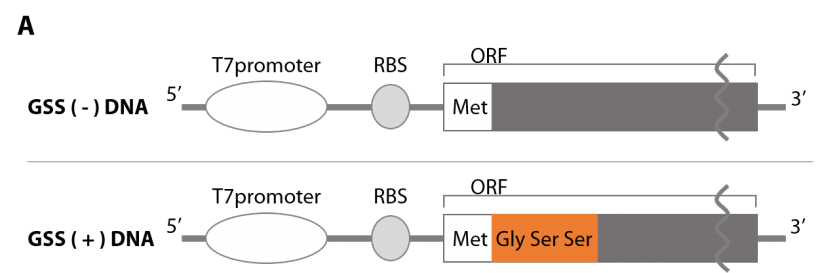 Send us the amino acid sequence of your target protein by the link below, and we will return a suitable DNA sequence based on our algorism considering important points for protein expression using PUREfrex®, such as codon optimization for whole ORF and N-terminus, UTRs, etc.